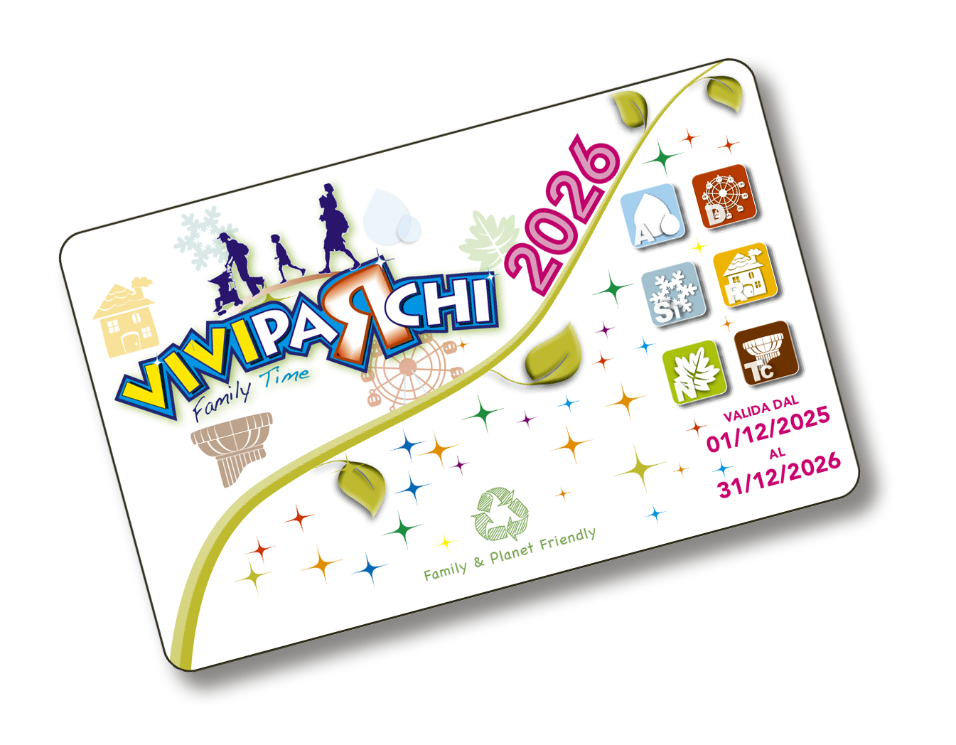 *Pienamente consapevoli degli impatti che la realizzazione e l'uso dei prodotti possono avere sulla natura abbiamo deciso di utilizzare, per la stampa della card fisica, materiali sempre più sostenibili che possano meglio rispettare l'ambiente in cui viviamo. Per questo motivo anche la card fisica Viviparchi 2025, disponibile solo per progetti specifici, è stata prodotta con materiale degradabile. E' solo un passo di un percorso che ci vuole presenti all' attenzione e al rispetto dell'ambiente dove viviamo con i nostri bambini.