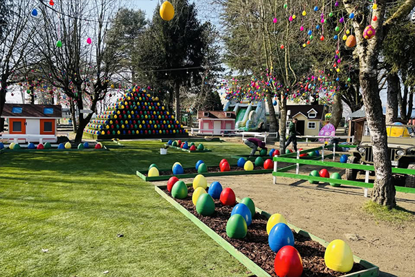 Il Villaggio delle Uova è un luogo sconfinato nel verde, un parco di 35000 metri quadri con alberi secolari, dove grandi e piccini possono trascorrere una giornata a stretto contatto con la natura, prendere parte a divertenti giochi con animazione e scatenare la fantasia partecipando ai laboratori creativi. “L’easter egg hunt”, che verrà organizzata nei weekend, è una caccia alle uova per bambini, i quali dovranno girare tra i nostri prati raccogliendo le uova colorate che al loro interno avranno sorprese quali caramelle, cioccolatini, giochi etc.
